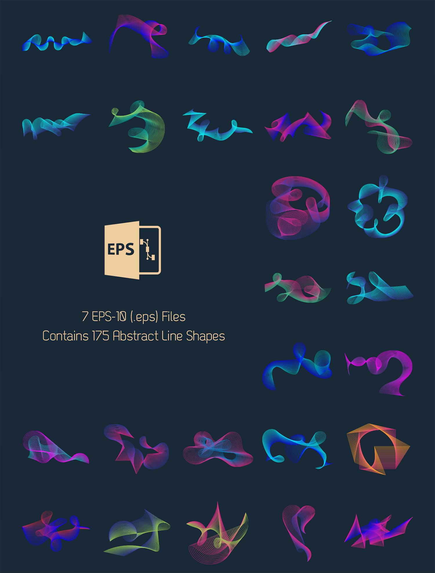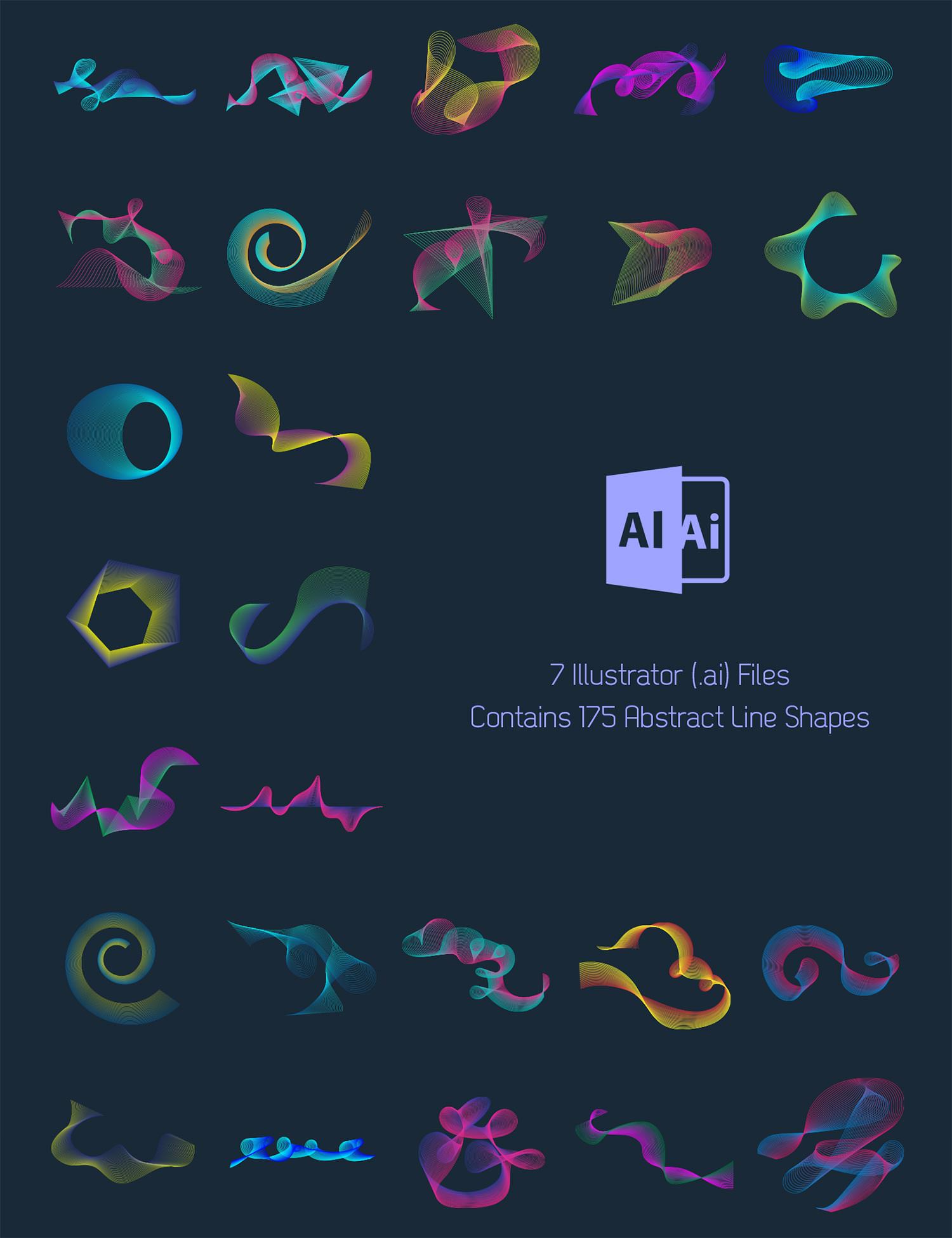 这175抽象波浪和无瑕线条可用于艺术手册,书籍,T恤/服装,背景,应用程序,UI / UX设计,网页背景,墙壁艺术/画布打印及更多。