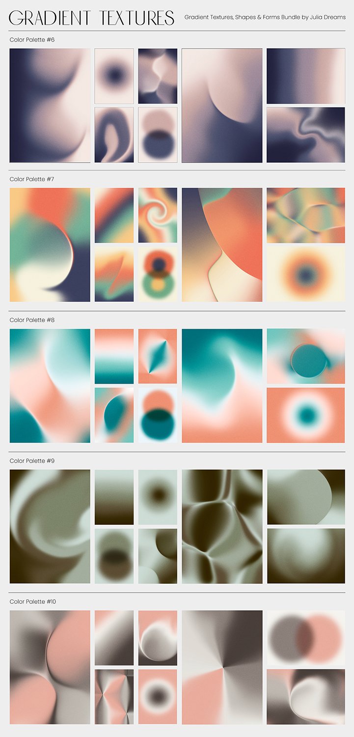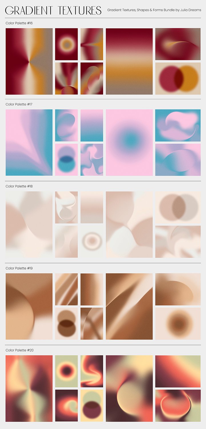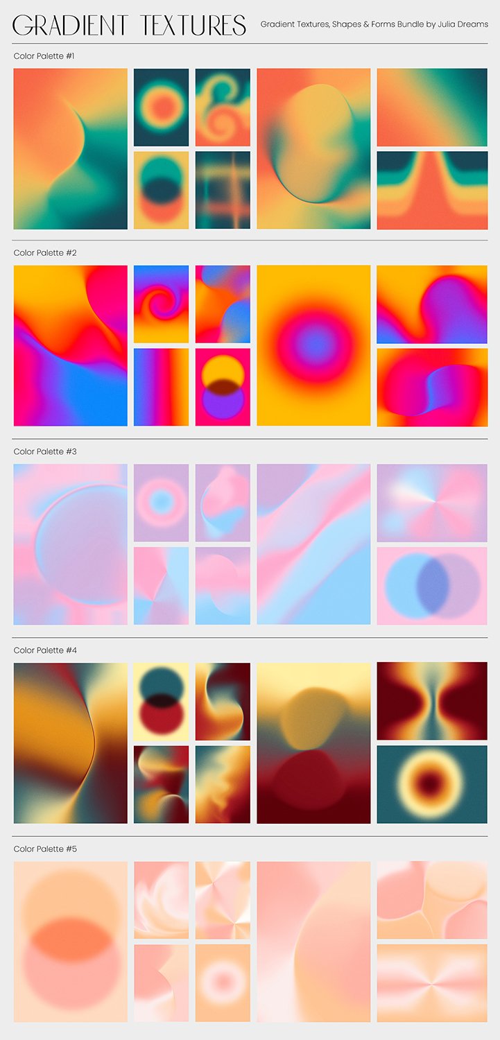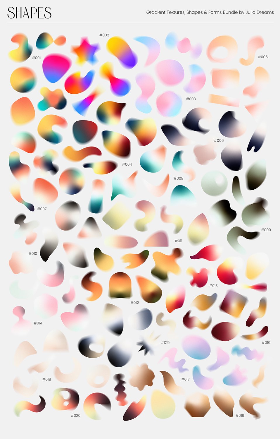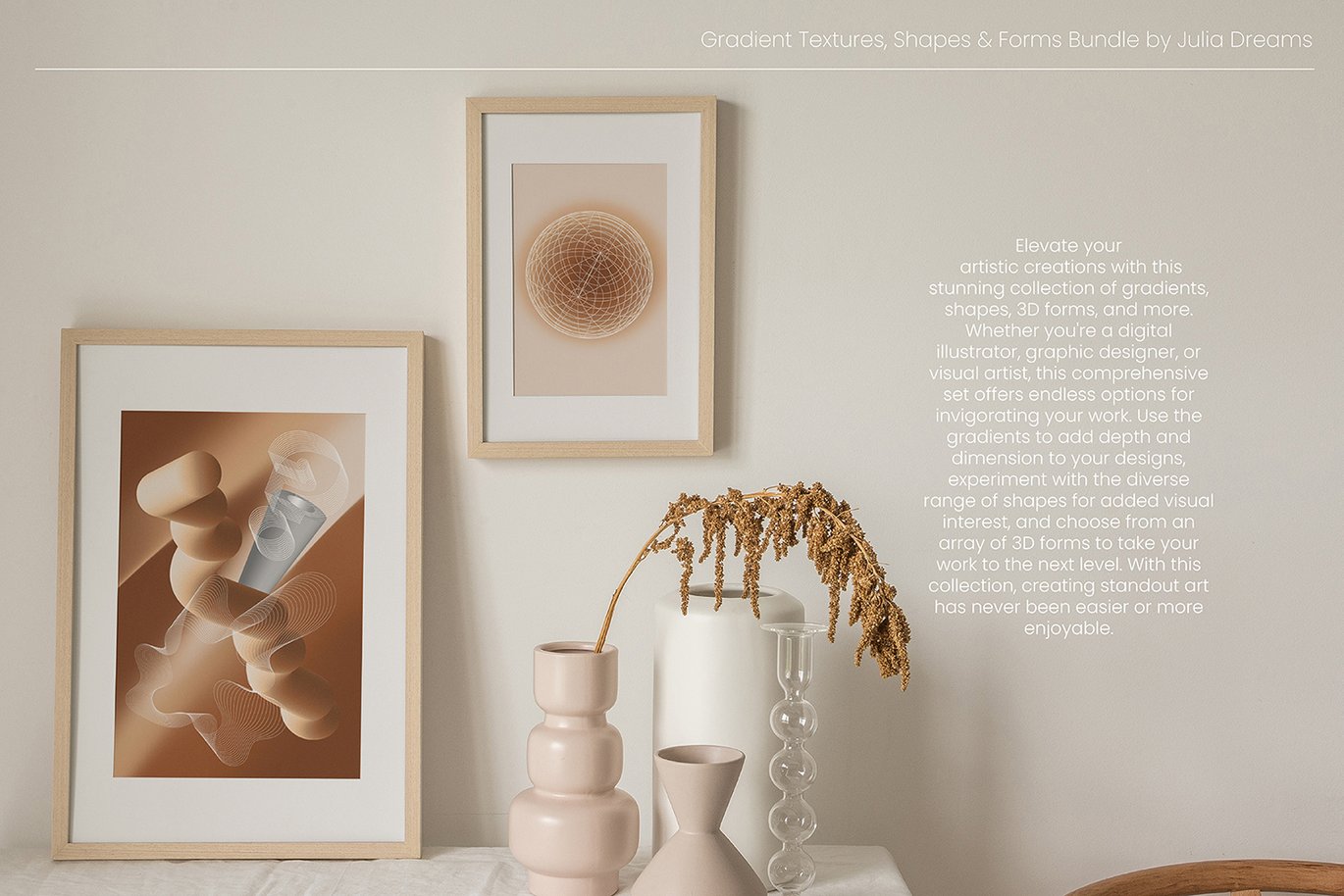 Gradient Textures Shapes 3D Objects Collection 这个令人惊叹的渐变、形状、3D 形式等集合来提升您的艺术创作。无论您是数字插画家、平面设计师还是视觉艺术家,这套全面的套装都提供了无尽的选择来激发您的工作活力。使用渐变为您的设计添加深度和维度,尝试各种形状以增加视觉趣味,并从一系列 3D 形式中进行选择,将您的工作提升到一个新的水平。有了这个系列,创作出色的艺术作品从未如此简单或愉快。