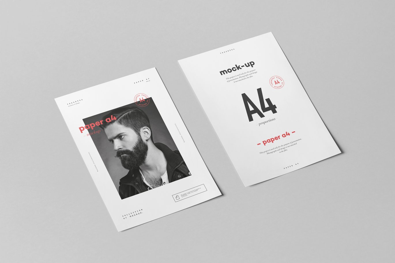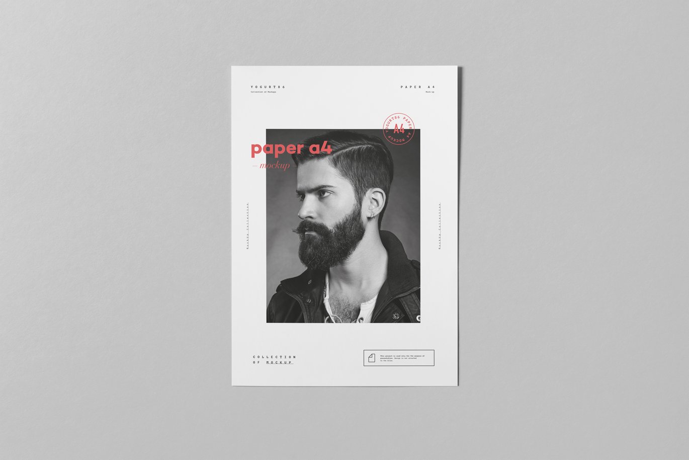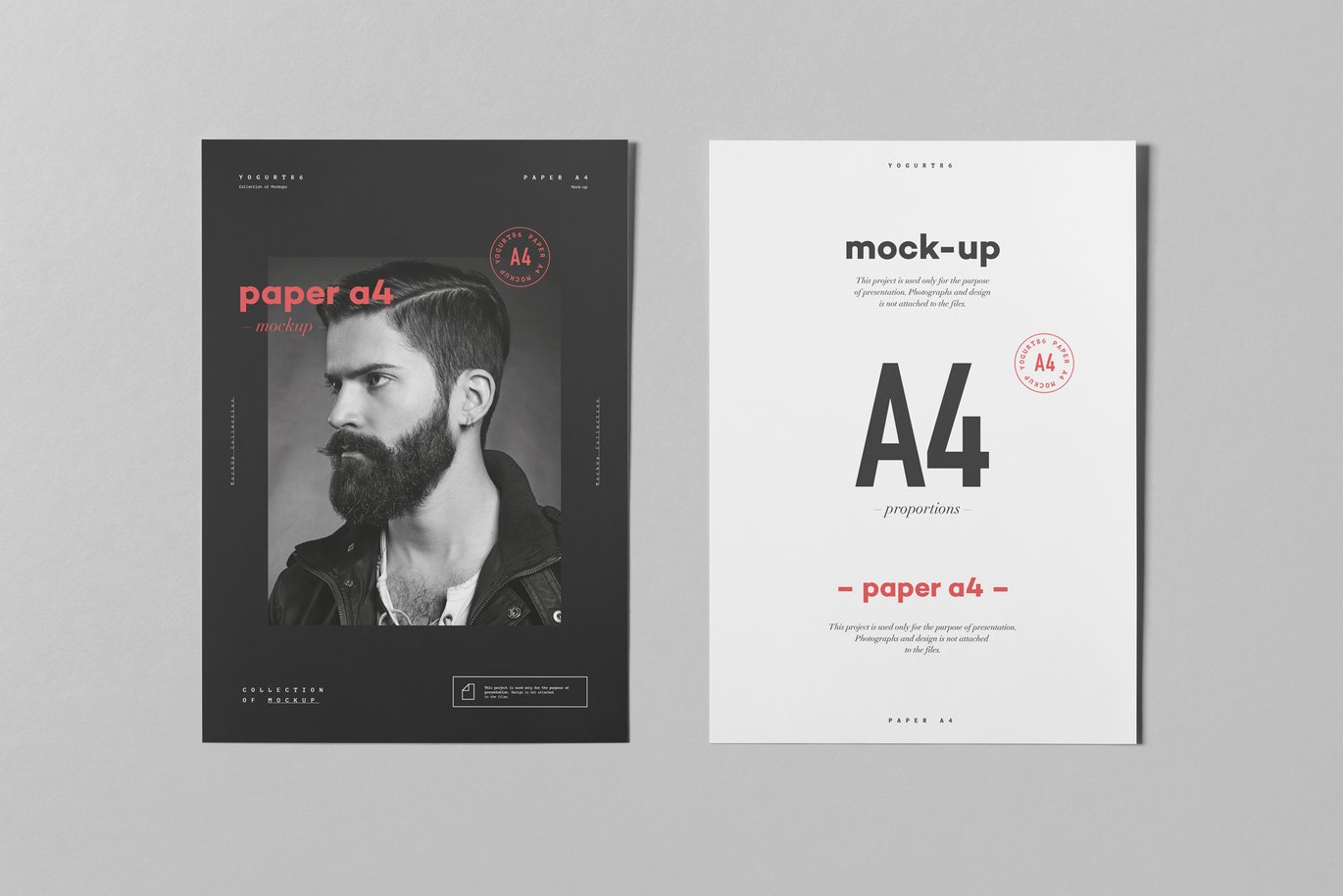 Paper A4 Mock-up 高级、易于编辑的模型。它包含创建项目逼真外观所需的一切。保证明亮和深色设计的美观和完美贴合形状。易于导航,描述良好的图层,友好的帮助文件。