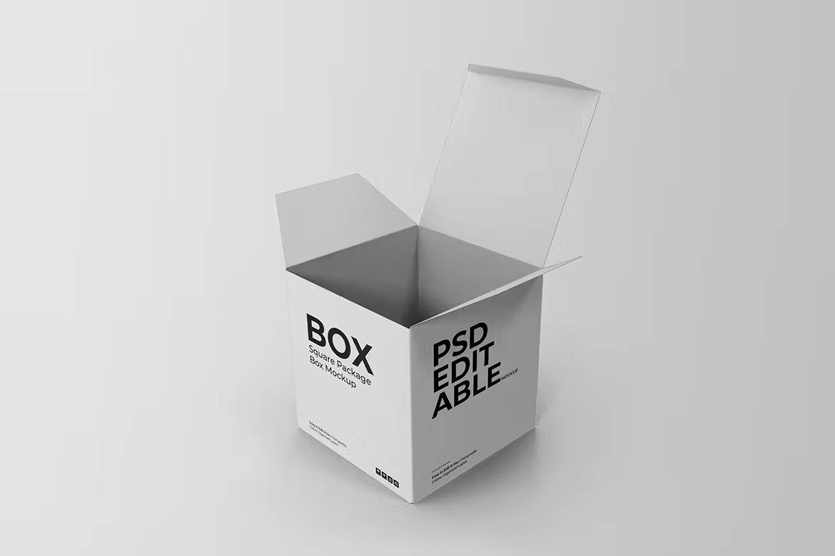 Square Package Box Mockup 文件包含6个PSD格式文件,高清分层。